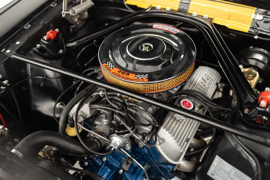 6S1685 erhielt nach seiner Fertigstellung am 8. April 1966 bei Hi-Performance Motors (El Segundo, CA) nachträglich ein Radio und wurde dann zu J.D. Ball Ford Inc. (Miami, FL) geliefert, welcher den Wagen dann am 1.5.66 an Hertz Miami für $3,547 plus $105.55 für die Magnum 500 Räder und $45,45 für das Radio auslieferte. Nach einem Jahr als Mietwagen wurde er am 27.4.67 für $2,600 an Sports Cars Unlimited (Daleville, AL) verkauft. 6S1685 wechselte in jedem Jahrzehnt den Besitzer, so dass er Anfang 2020 zum V8 Werk kam. Nun stand der Restaurierung des Wagens nicht im Wege. Der originale 289cui V8 HiPo Motor wurde revidiert, die Karosserie umfangreich rekonstruiert. Anstatt dem originalen C4 Automatikgetriebe erhielt der Shelby ein echtes T10 Aluminium Schaltgetriebe. Weitere Upgrades sind die Echtlederausstattung, Bremskraftverstärker und ein Kabelbaum mit Flachsicherungen.